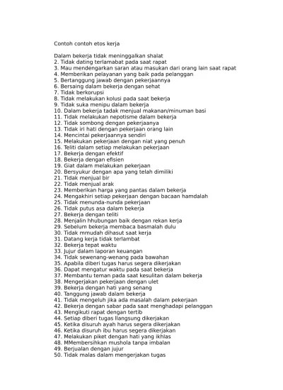 24 maret 2021 20:03 33286 kali dibaca 0 komentar 10 kali dibagikan. Berbagai contoh etos kerja dapat menjadi panduan untuk diterapkan saat bekerja dan menjadi poin plus saat rekrutmen, ketahuilah 9 tipsnya . Etos kerja dalam islam tidak hanya. Dapatkan total 3 juta untuk 10 pemenang . Seperti penuturan informan tokoh masyarakat mursalim (41 tahun) yang mengatakan: